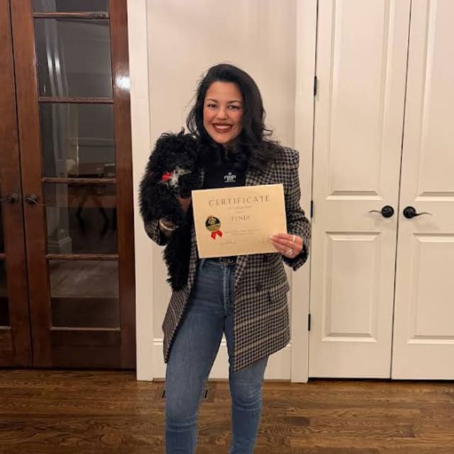Kris was a great trainer to our toy poodle FENDI. She learned basic commands, going into her travel kennel with no fuss, and a potty routine. Kris kept me updated with daily videos as well as instructions on how to continue at home training. Thank you for your help with our girl!