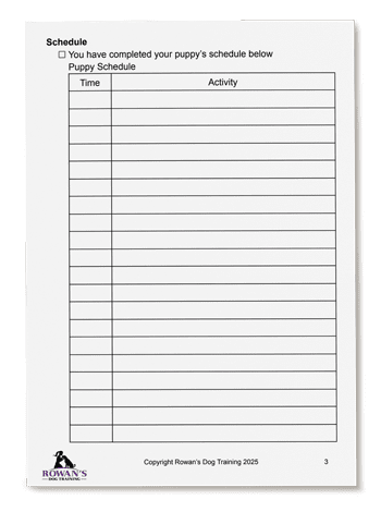 These dedicated workbooks ensure alignment for the whole family. There is no more ambiguity about what needs to be done or how well the puppy is doing. Mom did this, Dad did this, Alex did this—it’s all tracked! These workbooks help you systematically solve problem behaviors rather than relying on confusing, haphazard online training videos. Consider the Obedience Workbook your “Obedience training for dummies” guide—just use the checklist to create flawless behavior.